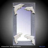 in Alder. Gray textured stain on the frame, white staining on the Dolphins.Tung Oil finish. Steel hooks on back, ready for wall mounting.