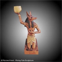 in Alder wood. Black, red and blue staining with gold acrylic. Tung oil finish.