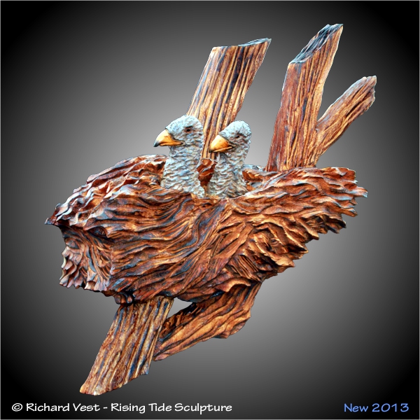 staining. The nest is also carved in Alder wood. Hand rubbed Tung oil