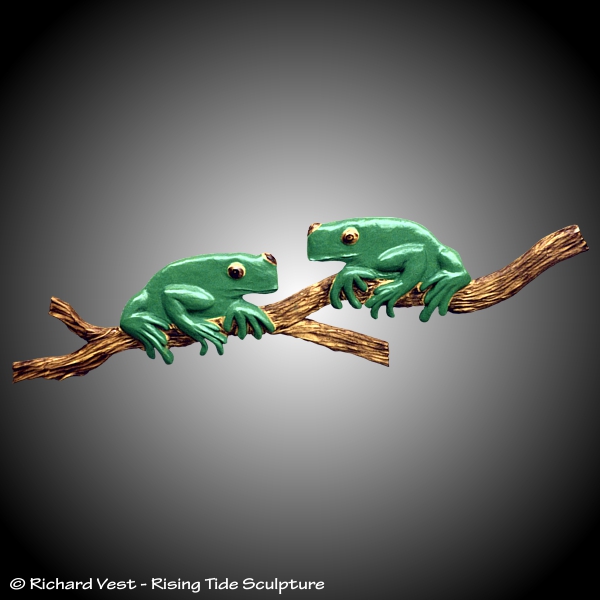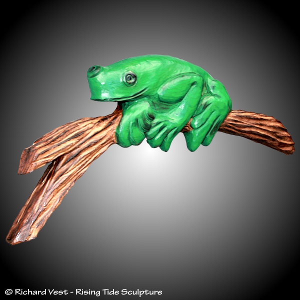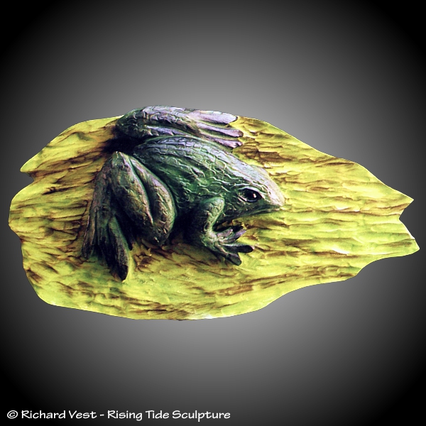 with a lighter greenish staining on the frog and lighter greenish staining on the