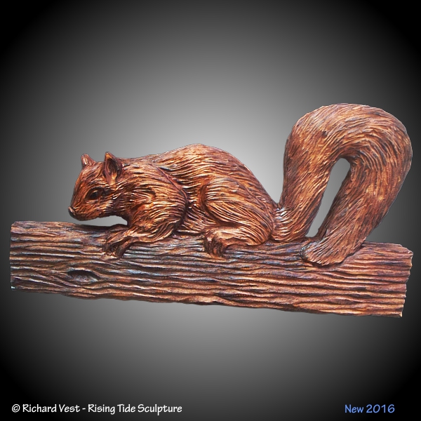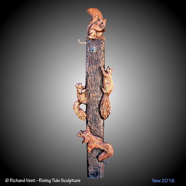 Wall Sculpture showing a group of squirrels on their way up a telephone